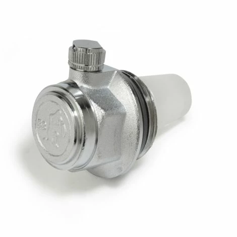 Automatischer Schwimmerentlüftungsstopfen mit Dichtring, Messing verchromt. Das Entlüftungsventil muss oben stehen.