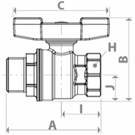 Giacomini Gas-Kugelhahn Abmessungen: G 1/2F x G 1/2M aus vernickeltem Messing, mit Innen- und Außengewinde.
