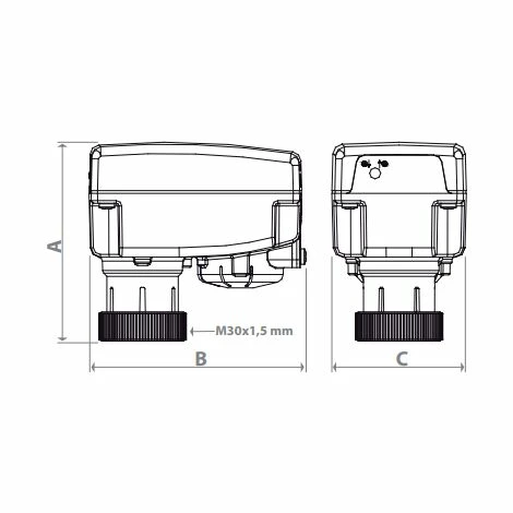 – K281KX012: Stellantrieb K281X012 + Ringmutter P19Y001, für den Einsatz mit Mischventilen mit M28 x 1,5 mm Anschluss.